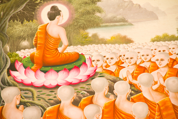 หลังจากตรัสรู้ พระพุทธเจ้าทรงแสดงธรรมเทศนากัณฑ์แรกคือ "ธัมมจักกัปปวัตตนสูตร" ให้แก่ปัญจวัคคีย์ทั้ง 5 ณ ป่าอิสิปตนมฤคทายวัน ส่งผลให้เกิดพระอริยสงฆ์องค์แรกของโลก และเริ่มมีการเผยแผ่หลักธรรมคำสอนเรื่อง อริยสัจ 4 ซึ่งว่าด้วยความจริงอันประเสริฐเกี่ยวกับการดับทุกข์