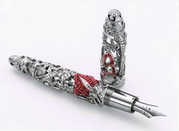 Mystery Masterpiece เป็นปากกายีห้อ Mont Blanc ออกแบบโดย Van Cleef-Arpels ปากกาด้ามนี้ประดับด้วยเพชร 840 เม็ด (ผมไม่แน่ใจครับว่าเพชร เรานับเป็นเม็ดหรือเป็นลูก?) ราคาของปากกาด้ามนี้อยู่ที่ด้ามละ 730,000 เหรียญสหรัฐ (ประมาณ 22 ล้านบาท)