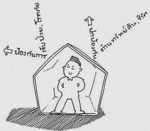 ขอให้คิดว่าเราเหมือนกำลังตั้งค่ายคูประตูหอรบอยู่ เราต้องรู้ว่าข้าศึกจะเข้ามาโจมตีเราทางทิศใดได้บ้าง และหากเกิดความพลาดพลั้งขึ้นมา เราจะหนีไปทางไหนได้บ้าง ซึ่งข้าศึกอาจจะเข้ามาตีเราหลายทางก็ได้ และเราก็อาจจะมีทางหนีไปหลายทางก็ได้ บางครั้งข้าศึกไม่ได้มาตีแค่ ๒-๓ ทาง แต่ทำการ "ล้อม" เราเอาไว้ทุกด้านก็ได้ ทำให้ทางหนีของเราถูกปิดกั้นไว้หมด