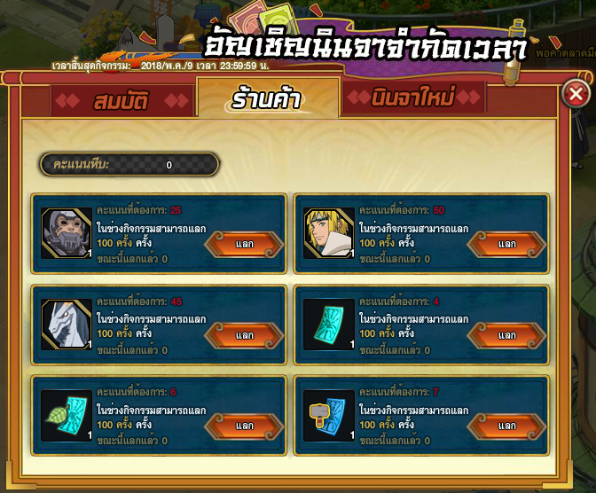 - ยันต์หลอมล้าง 1 ชิ้น ใช้ 4 คะแนน แลกได้ 100 ครั้ง