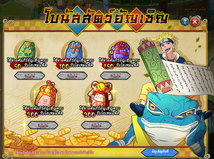 - ยันต์หลอมล้าง ใช้ 2 คะแนน แลกได้สูงสุด 100 ครั้ง