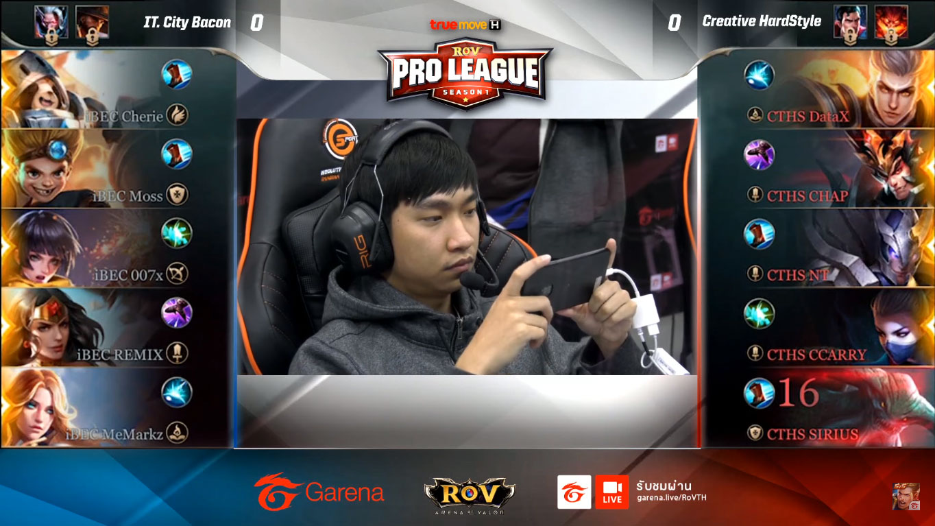 ภาพการแข่งขัน Pro League Season1 (2018) ซึ่งในการแข่งขันE-Sport ที่ผ่านมาในไทย จะมีโหมดแบนฮีโร่ ฝั่งละ 2 ตัว