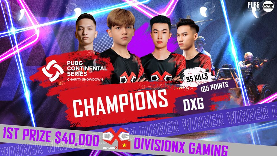นอกจากจะได้มันส์แล้วยังได้ทำบุญอีกด้วย และแน่นอนว่าแชมป์ของเราในรายการนี้ก็คือทีม DivisionX Gaming ตัวแทนจากประเทศเวียดนาม ที่คว้าแชมป์ในรายการ PUBG Continental Series Charity Showdown - APAC Phase1 ไปครองพร้อมเงินรางวัล $40,000 USD และได้รับเงิน $100,000 USD นำไปบริจาคให้มูลนิธิที่พวกเขาเลือกเพื่อช่วย COVID-19 อีกด้วย