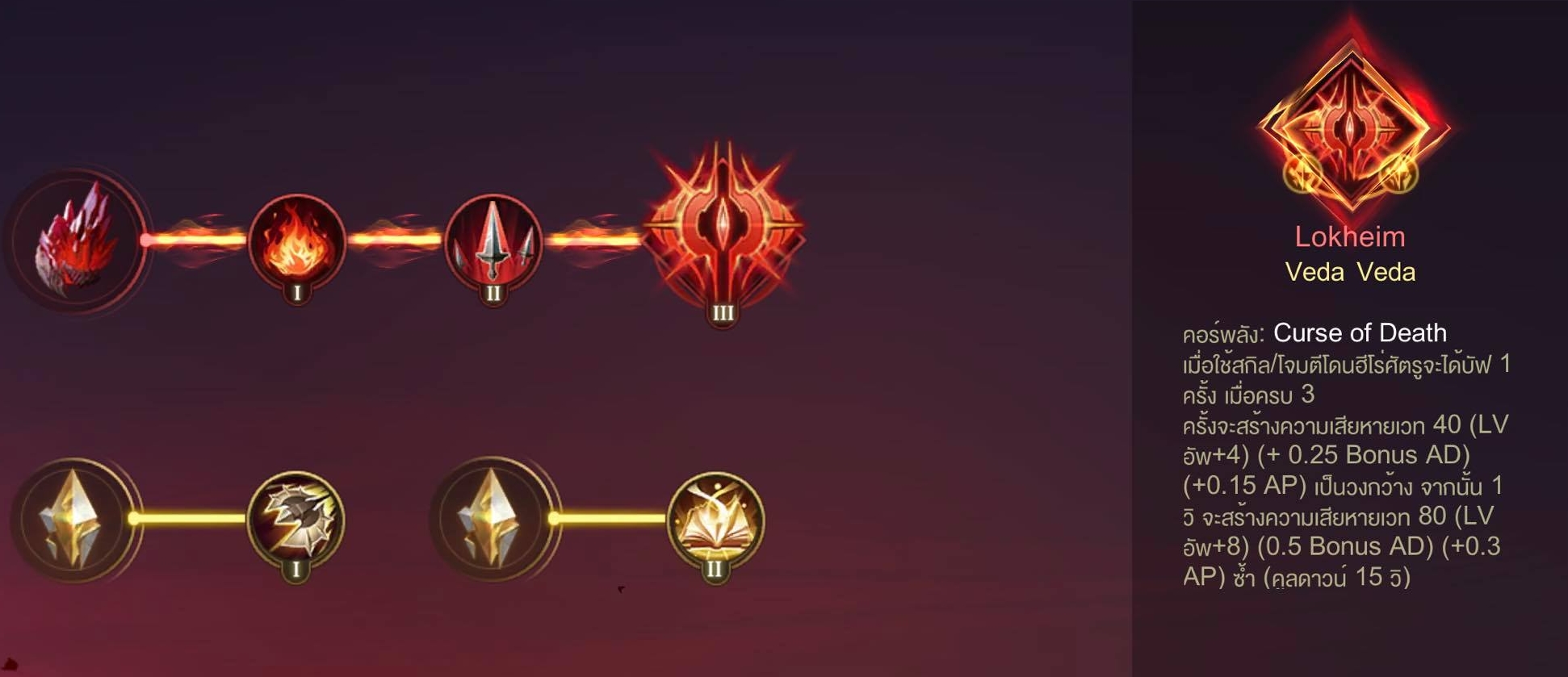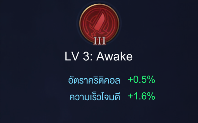 - สามารถติด Critical ได้ทุกครั้งที่สกิลนี้โจมตีโดนฮีโร่จะลด Cooldown ให้กับสกิล 1 และสกิล 2 ลง 0.3 วินาที