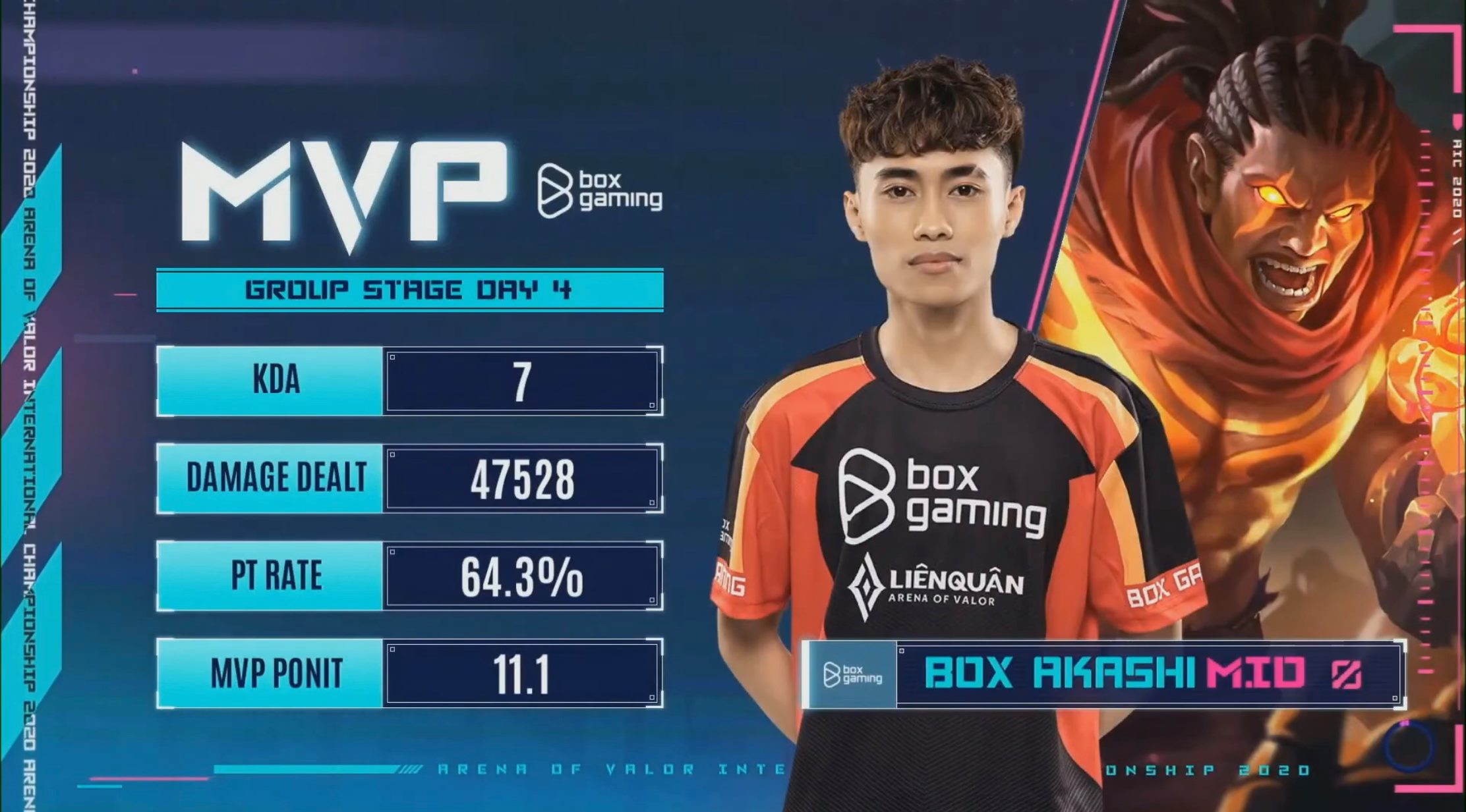 สวัสดีเพื่อนๆชาว RoV ที่น่ารักทุกคนเราอยู่กับงาน AIC 2020 ศึก RoV ที่ยิ่งใหญ่ที่สุดในโลกในรอบ Group Stage Week 1 day 4 ซึ่งเป็นการพบกันระหว่าง DG Esports และ BOX Gaming ซึ่งเป็นการพบกันระหว่างตัวแทนเวียดนามและอินโดนีเซียทางฝั่ง BOX Gaming นั้นก็มีประวัติในการโค่น Team Flash ที่เป็นเจ้าของแชมป์ 4 สมัยการแข่งในเวียดนามมาแล้ว บอกเลยว่าฝีมือไม่ธรรมดาและศึกนี้จะเป็นสิ่งที่พิสูจน์ฝีมือของพวกเขาอีกครั้งหนึ่ง อีกอย่างทีม BOX Gaming นั้นเป็นรองแชมป์จากศึก AOG ของทางเวียดนามอีกด้วย