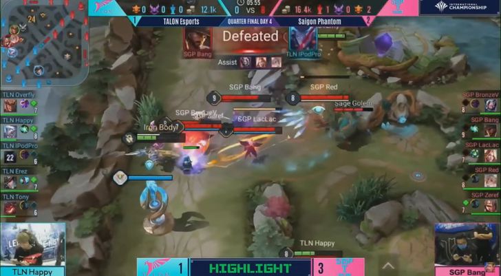 - เกมที่ 3 ต้องยอมรับว่ารูปแบบการจัดทีมของทางฝั่ง Saigon Phantom นั้นจะเลือกตัวฮีโร่ที่ยืนระยะยาวได้ดีมากแล้วก็จัดการได้ยากในช่วงต้นเกม พวกเขาเอาตัวที่มีพลังในการโซนพื้นที่อย่าง Maloch เข้ามาทำเกมด้วย เพื่อให้ Keera และ Celica ทำ DMG ได้ง่ายและ Talon ก็ต้องแพ้ไปเป็น 2-1 เกมโดย Saigon Phantom นำไปก่อน