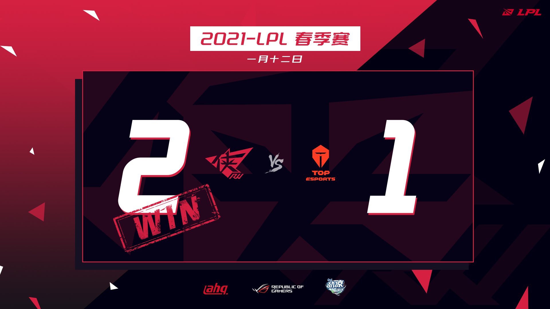 กลับมาอีกครั้งสำหรับ League of Legends LPL 2021 Spring Season และนี้คือผลการแข่งขันของวันอังคารที่ 12 มกราคม 2021 หรือ Week 2 Day 2 โดยในวันนี้มีการแข่งด้วยกันทั้งหมดสองคู่ด้วยกัน