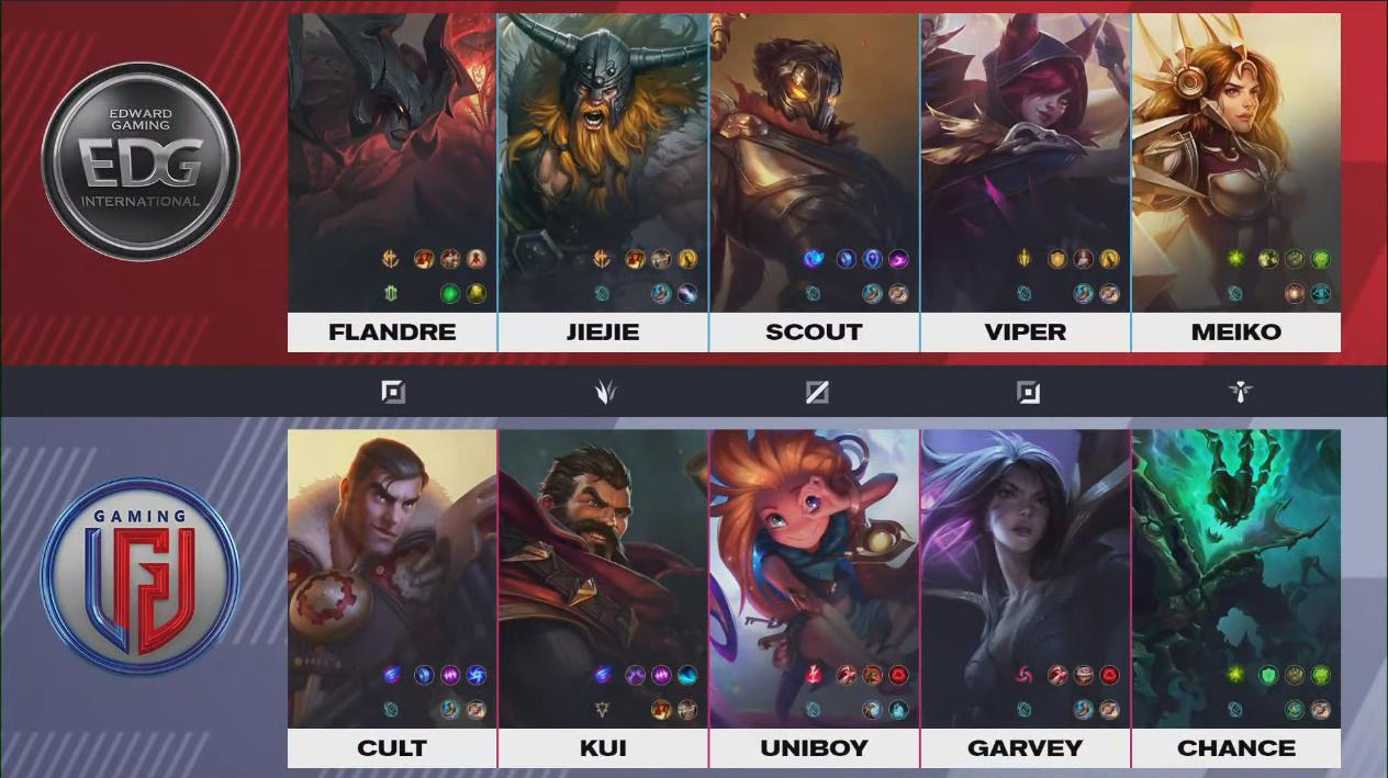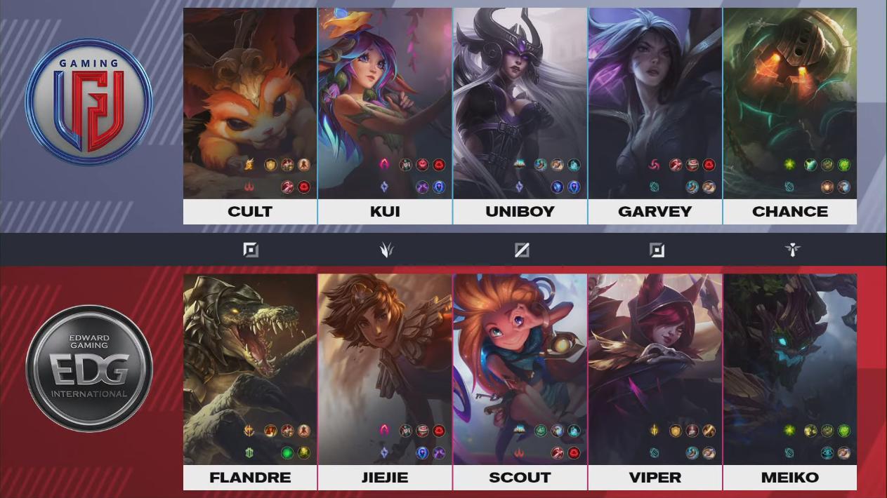 เรียกว่าแตกต่างกันสุดๆระหว่างทั้งสองทีม LGD แพ้ V5 ทีมกลางตารางในเกมแรกของพวกเขาเหมือนยังหาฟอร์มของตัวเองไม่เจอ กลับกัน EDG เรียกว่าพร้อมสุดๆชนะ FPX มาด้วย ดูเหมือนจะไม่ใช่คู่แข่งที่ยากสำหรับพวกเขาเลยในคู่นี้