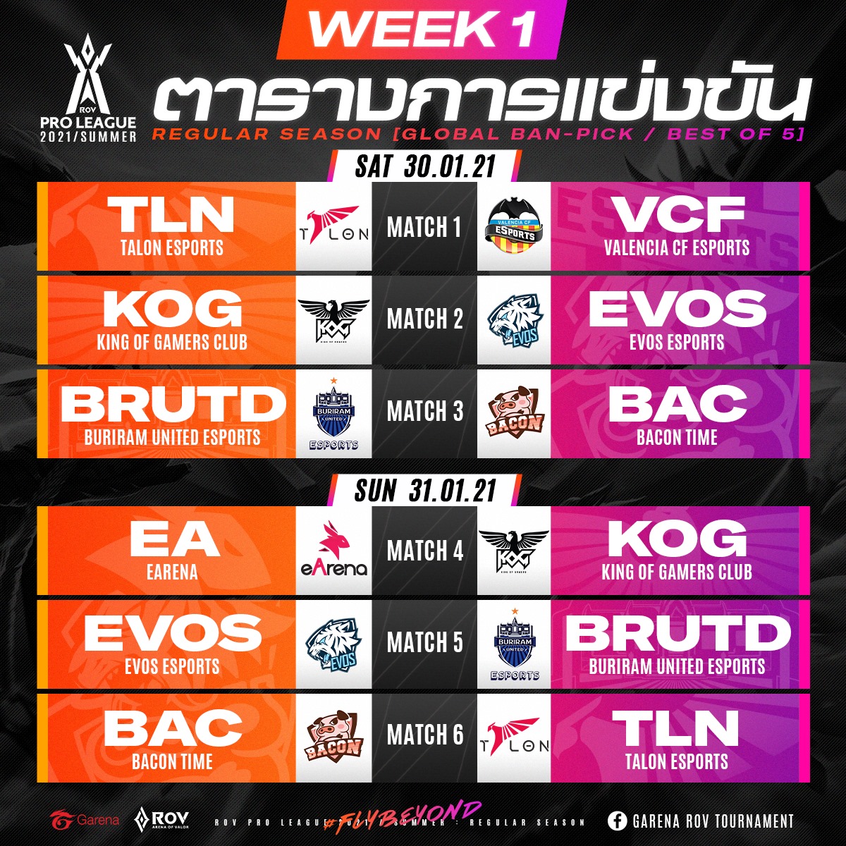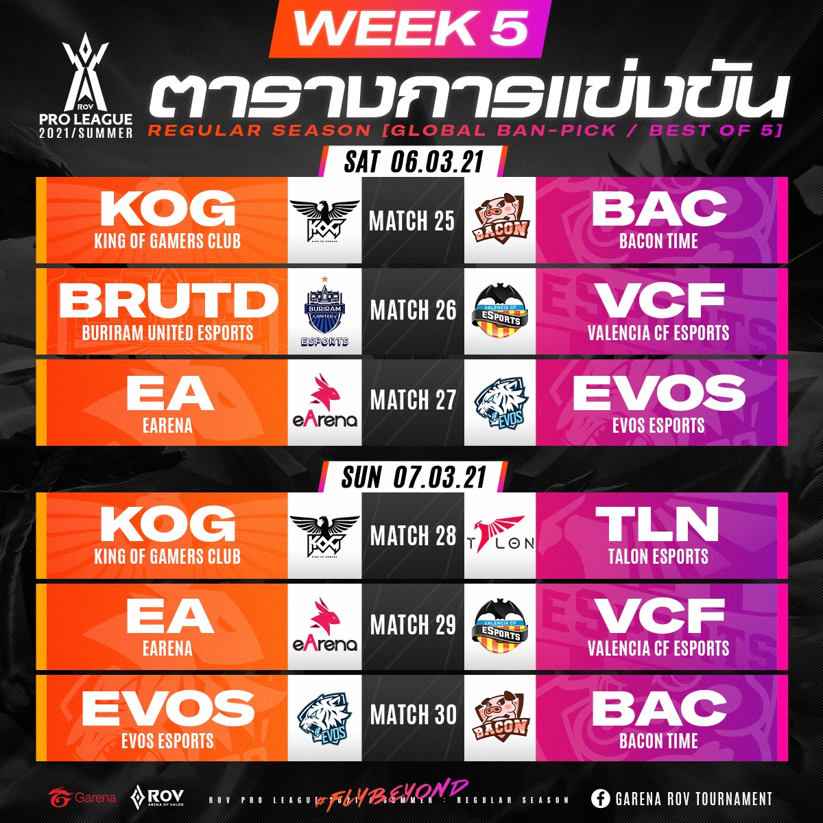 RoV เผยตารางแข่งรอบ Regular Season RPL 2021 อยากเชียร์ใคร ดูตารางนี้รู้เรื่อง !!