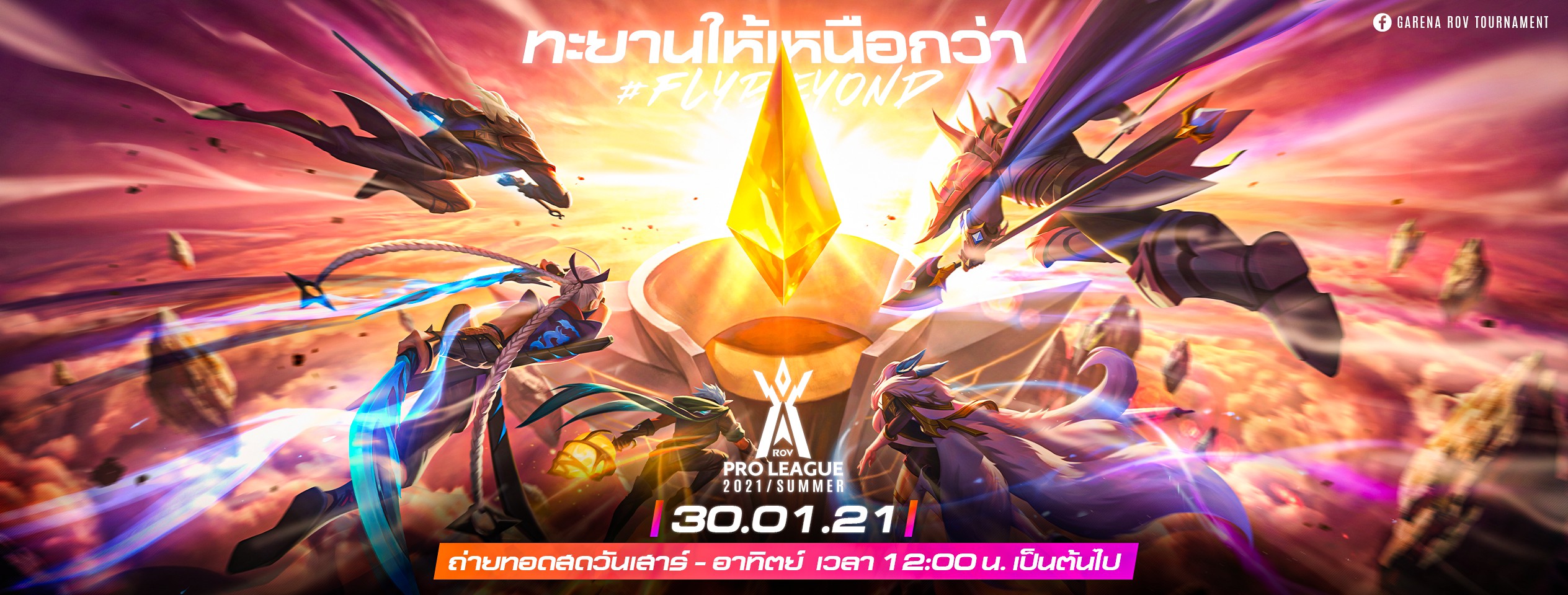 สวัสดีเพื่อนๆชาว RoV ที่น่ารักทุกคนก็ช่วงนี้อยู่ในบรรยากาศการแข่งที่กำลังใกล้เข้ามาแล้ว ซึ่งจะเป็นช่วงงานแข่งใหญ่ช่วงต้นปีกับ RoV Pro league 2020 Summer แน่นอนว่าการแข่งนี้เป็นการแข่งขันที่สำคัญที่สุดในเมืองไทย ที่มีสโมสรชั้นนำเข้าร่วมถึง 7 สโมสร ที่ได้มีการซื้อขายแลกเปลี่ยนนักกีฬากันก่อนหน้านี้อย่างเข้มข้น และก็ได้เวลาแล้วที่จะปล่อยพวกเขาลงสู่สนาม ซึ่งพวกเขานั้นเตรียมพร้อมกันมาสักพักใหญ่แล้ว เพื่อให้พวกเราได้ร่วมลุ้นไปกับความมันส์ ในการแข่งขันในครั้งนี้กับสโลแกน " FLY BEYOND " ยังไงก็ตาม RoV Pro league 2020 Summer นั้นจะเริ่มขึ้นในวันที่ 30 มกราคม 2564 ถ่ายทอดทุกวันเสาร์อาทิตย์เวลา 12:00 น เป็นต้นไป