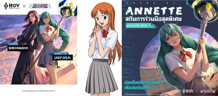 ซึ่ง Annette จะมาทำหน้าที่สวมชุดนักเรียนนี้แทนซึ่งเป็นที่น่าเสียดาย แต่อย่าพึ่งหมดหวังเพราะอาจมีการผสานความร่วมมือครั้งหน้าระหว่าง Bleach X RoV ก็ไว้ค่อยลุ้นกันใหม่ ไว้เจอกันกับตัวที่เหลือในบทความหน้าครับผม