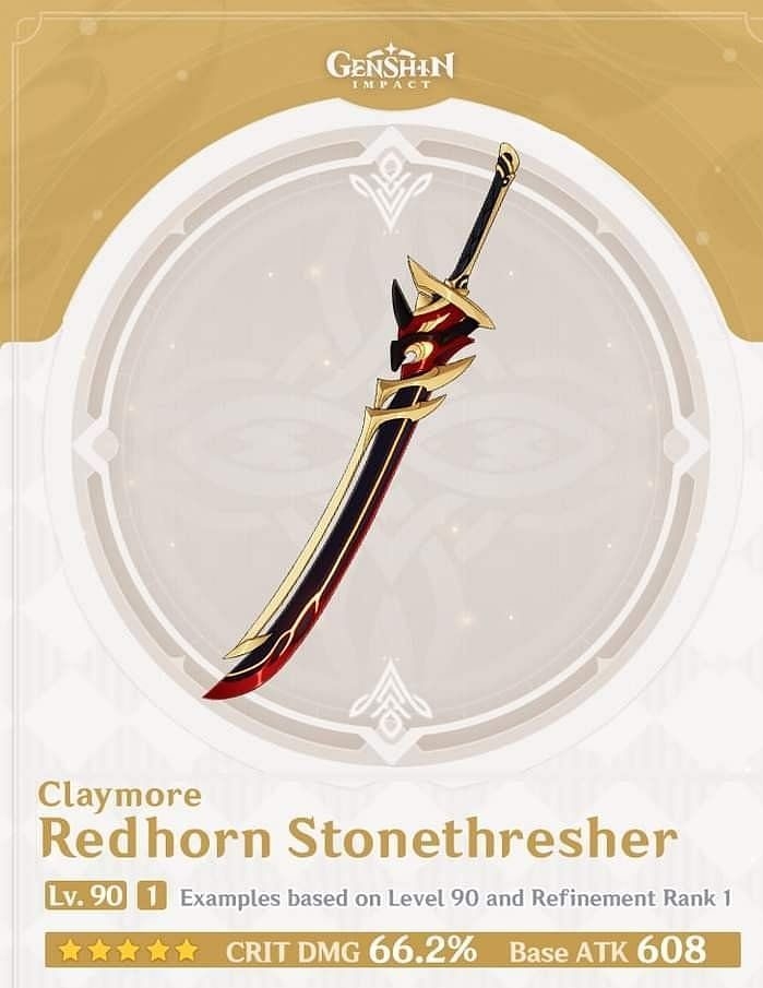 บอกเลยว่า Status อาวุธดาบใหญ่นี่อยู่ในระดับสูง และยังมีการเพิ่มพลังป้องกันและมีสกิลที่มีการคำนวณ DMG จากพลังป้องกันอีก บอกเลยว่าดีมากทีเดียวกับการเป็นอาวุธประจำตัวของ Arataki Itto แต่ก็ไม่ได้จำกัดเฉพาะ Itto ได้ใช้แต่ว่าอัศวินฝึกหัดอย่าง Noel ถือก็ดีมากเช่นกัน กับตัวที่คำนวณค่าพลังการโจมตีจากการป้องกัน เรียกได้ว่าไม่มี Itto ก็เปิดเก็บไว้ใช้ได้