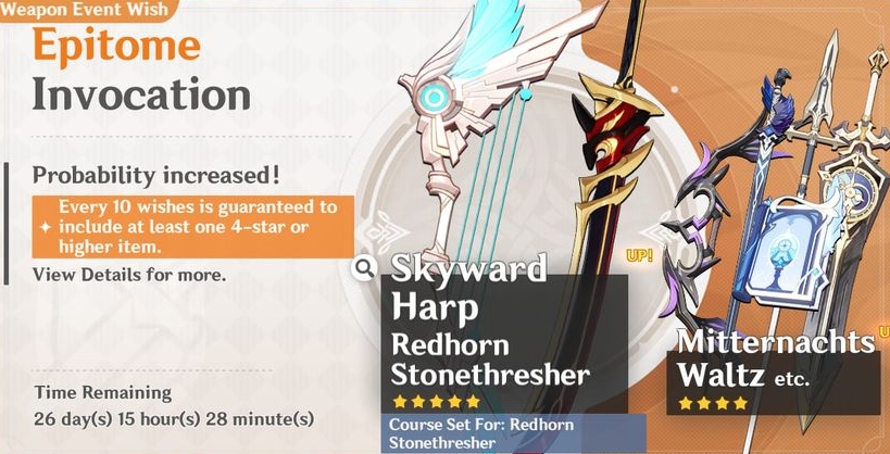 ถือว่าเป็น Highlight ที่ใครหลายคนรอคอยกับธนูชุด Set Skyward ที่ถือว่าเป็น 1 ในอาวุธที่ดีที่สุดในชุด Skyward ทั้งหมดที่ความสามารถนั้นถือว่าดีมากหลัก ๆ เลยด้วยการเติบโตเป็น Cri-Rate ที่ทำให้การปั้นตัวละครนั้นสะดวก และยังมีสกิลเพิ่มความแรงของ Critical อีกด้วยในตัวและมีสกิลช่วยส่งเสริมในการทำ DMG อีก