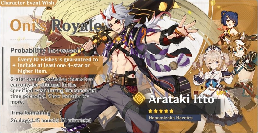 เรามาดูที่ Arataki Itto ที่ถือว่าเป็นยักษ์ Oni ที่ใครหลายคนรอกันมาเนิ่นนาน ซึ่งเขาเป็นตัวละคร DPS ธาตุหินที่มีพลังการโจมตีที่รวดเร็วและรุนแรงมาก ๆ โดยหลายคนคงพอจะเห็นรูปแบบการโจมตีของเขากันไปบ้างแล้ว บอกได้เลยว่าหวดหนักแน่ ๆ