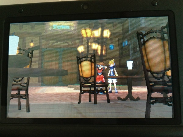 ทดลองเกมแรกกับ Resident Evil เปิดโหมด 3D ให้ความรู้สึกดีกว่าเดิมมาก จอใหญ่ขึ้น ทำให้เอฟเฟค 3D ดูชัดขึ้น สบายตาขึ้น แม้ว่าจะยังต้องหาจุดที่เหมาะสมอยู่ แต่ก็ไม่ยากเท่าของเก่าที่ขยับมือนิดเดียวก็หลุดโฟกัสแล้ว กับอีกเกมที่ลองคือ Kindom Hearts 3D สำหรับเกมนี้รู้สึกแตกต่างออกไปหน่อย เนื่องจากตัวเกมเน้นสีสรรค์ค่อนข้างเยอะ ทำให้เห็นรอยขอบหยักค่อนข้างชัด ในภาพที่ถ่ายมาอาจจะดูค่อนข้างแย่พอสมควร แต่ของจริงไม่ได้ขนาดนั้นนะ แสงกับสีที่ได้ก็รู้สึกว่าดูดีขึ้นเยอะด้วย