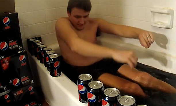 ครั้งนี้พามานอกเรื่อง ที่ไม่เกี่ยวกับเกมส์หรือการ์ตูนอนิเมะกันสักหน่อย แต่เห็นคลิปนี้แล้วอยากแชร์ เป็นคลิปหนุ่มอเมริกาที่ไม่ทราบว่าคิดอะไรอยู่ จึงลงมือทำเรื่องพิศดารด้วยการเท Pepsi Max กว่า 300 กระป๋องลงอ่างอาบน้ำ เพื่อใช้อาบแทนน้ำนั่นเอง จากปกติที่จะมีสปาให้อาบน้ำแร่แช่น้ำนม แต่หนุ่มคนนี้อาบ Pepsi Max แทน และสาเหตุที่ใช้ Pepsi Max ก็เพราะว่ามันไม่มีน้ำตาลนั่นเองครับ อาบแล้วไม่เหนียวตัว แต่ด้วยแก๊สอัดลมที่อยู่ในน้ำก็คงทำให้ขนลุกขนพองกันเลยทีเดียว