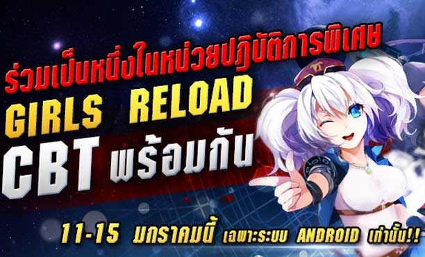 สิ้นสุดการรอคอย! ขอเชิญเหล่าทหารใหม่ทุกท่านร่วมเป็นหนึ่งในหน่วยปฎิบัติการพิเศษ Girls Reload พิชิตภารกิจสู่ทดสอบครั้งสำคัญในช่วง CBT 11-15 มกราคมนี้ เพื่อเตรียมความพร้อมก่อนที่จะเปิดเซิฟจริง โดยตัวเกม ก็ได้ปล่อยให้ดาวโหลด .APK ได้แล้ววันนี้