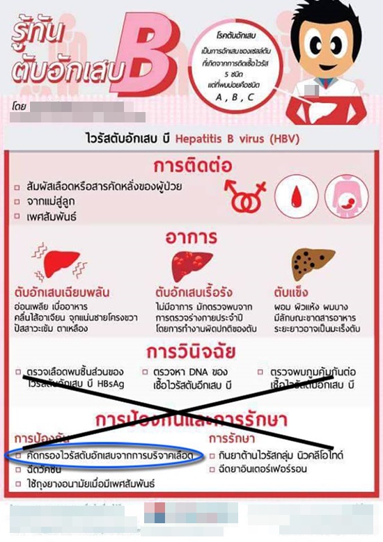 โดยความเข้าใจผิดดังกล่าวที่ปล่อยจากโรงพยาบาลแห่งหนึ่ง มีเนื้อหาว่า “การป้องกันและรักษา โรคไวรัสตับอับเสบบี คือการตรวจคัดกรองไวรัสตับอับเสบจากการบริจาคเลือด” นั้น ทำให้ ทนพ.ภาคภูมิ เดชหัสดิน ออกมาชี้แจงผ่านเฟซบุ๊คเพจว่า ไม่อยากให้ประชาชนเข้าใจผิดว่าการมาบริจาคเลือด เท่ากับการตรวจเลือดหาเชื้อโรค เพราะในความเป็นจริงแล้ว ถึงแม้ทางศูนย์จะมีการตรวจคัดกรองหาเชื้อโรคในเลือดก่อนรับบริจาค และก่อนใช้งานจริง แต่หากผู้ที่มาบริจาคอยู่ภาวะเสี่ยงต่อโรคใดโรคหนึ่งเพียงในระยะไม่กี่วัน ระยะเวลาอาจไม่มากพอที่จะทำให้เจ้าหน้าที่ตรวจหาเชื้อนั้นๆ เจอได้ เช่น ไวรัสตับอักเสบชนิดบี จะตรวจพบเจอเชื้อในเลือดเมื่อผ่านวันที่ได้รับเชื้อไปอย่างเร็วที่สุดคือ 33 วัน ไวรัสตับอับเสบชนิดซี ใช้เวลา 12 วัน และเชื้อ HIV ต้องใช้เวลาถึง 11 วัน