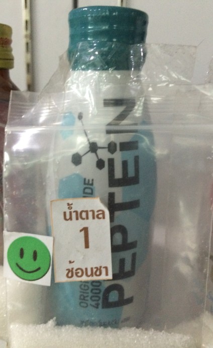 เปิดประตูเข้าไปที่มูลนิธิ เพียงก้าวแรกหันไปก็เห็นนิทรรศการแล้ว เดินเข้าไปใกล้ๆ นั้นชาเขียวที่ใช่ นี่น้ำอัดลมที่ชอบ แต่เอ๊ะ!! ถุงเล็กๆ ด้านหน้านี่คือน้ำตาลที่เราต้องกินจากการบริโภคเครื่องดื่มนี่เหรอ ช็อกเลย!!