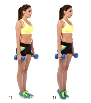 - ยืนตัวตรง ยกส้นเท้าขึ้น