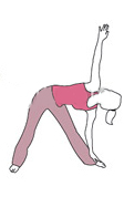 - ยืดแขนซ้ายมาจับข้อเท้าซ้ายและยกแขนขวาตั้งตรง แหงนศีรษะมองมือขวาและสูดลมหายใจเข้า-ออกลึกๆ หลายๆ ครั้ง ทำซ้ำท่าเดิมทางด้านขวา