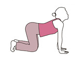 - คุกเข่า โดยให้หัวเข่าสองข้างอยู่ห่างกัน วางมือสองข้างให้ตรงกับหัวไหล่
