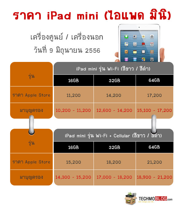 ราคา iPad mini (ไอแพด มินิ) เครื่องศูนย์ มาบุญครอง เครื่องหิ้ว (เครื่องนอก) วันที่ 9 มิถุนายน 2556 [ราคา iPad mini อัพเดท]