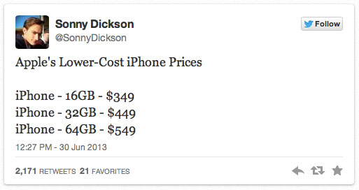 จาก ราคา iphone 5c ของ Sonny Dickson ตามรูปด้านบน ถ้าหาก iphone5c เคาะราคาตามข้อมูลดังกล่าว ไม่ใช่แค่ iPod toch gen 5 เท่านั้น ที่จะได้รับผลกระทบ แต่รวมไปถึง iPhone 4S และ iPhone 4 ซึ่งน่าจะหมายถึงการเลิกขาย iPhone 4s ไปเลยเช่นกัน เรามาดูผลกระทบการลดราคาลงเป็นทอดๆ กันนะครับ