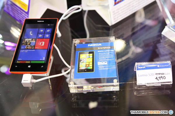 Nokia Lumia 520 ราคา 4,990 บาท เมื่อซื้อภายในงานจะได้รับของแถมฟรี : Micro SD 8 GB และ ร่ม Nokia