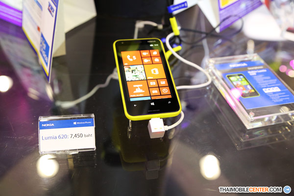 Nokia Lumia 620 ราคา 7,450 บาท เมื่อซื้อภายในงานจะได้รับของแถมฟรี : ซิลิโคนกันกระแทก Bumper, Micro SD 8 GB และ ร่ม Nokia