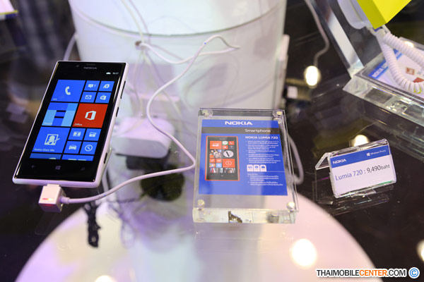 Nokia Lumia 720 ราคา 9,490 บาท เมื่อซื้อภายในงานจะได้รับของแถมฟรี : ซีลิโคนกันรอย, Power Bank แบบพกพา และกระเป๋าผ้าสุดเก๋