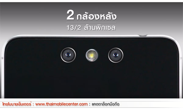 - ความละเอียดสูงสุด 13 ล้านพิกเซล + 2 ล้านพิกเซล ในโหมด Dual Camera หรือ 18 ล้านพิกเซล ในโหมดปกติ