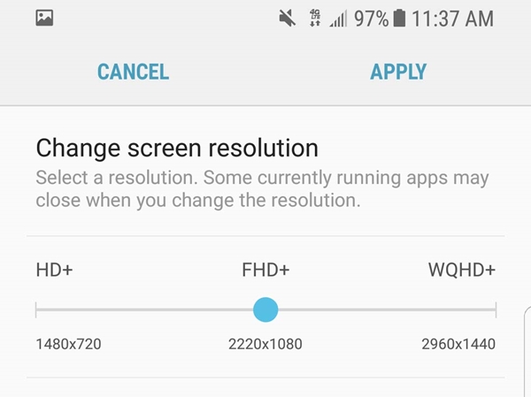 Samsung Galaxy S8 และ S8+ มาพร้อมกับฟีเจอร์ที่ให้ผู้ใช้งานสามารถเพิ่ม-ลด ความละเอียดหน้าจอแสดงผลเพื่อประหยัดแบตเตอรี่เองได้ โดยปกติแล้ว Galaxy S8 จะรันด้วยความละเอียดระดับ FHD+ เป็นค่าเริ่มต้น แต่ผู้ใช้สามารถลดความละเอียดเหลือเพียง HD+ ด้วยการเข้าไปที่ Setting > Display > Screen Resolution จากนั้นให้เลื่อนแถบมาไว้ที่ด้านซ้ายสุด