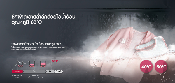 ความพิเศษที่สุดของเครื่องซักผ้ายุคนี้ และโดยเฉพาะแอลจีฝาบนรุ่นนี้คือการเลือกฟังก์ชั่น SteamTM ที่คุณสามารถตัดสินใจได้เองว่าจะซักด้วยน้ำร้อนระดับไหน ถ้าเลือก Stain Care เครื่องจะซักผ้าด้วยด้วยน้ำร้อนอุณหภูมิ 40 องศาเซลเซียส ซึ่งจะขจัดคราบฝังลึกได้อย่างมีประสิทธิภาพ หรือถ้าเลือก Allergy Care จะซักด้วยน้ำร้อนอุณหภูมิ 60 องศาเซลเซียสที่มาพร้อมคุณสมบัติขจัดสารก่อภูมิแพ้ได้ถึง 99.9% เพื่อสุขภาพที่ดีของผู้ใช้งานทุกคน