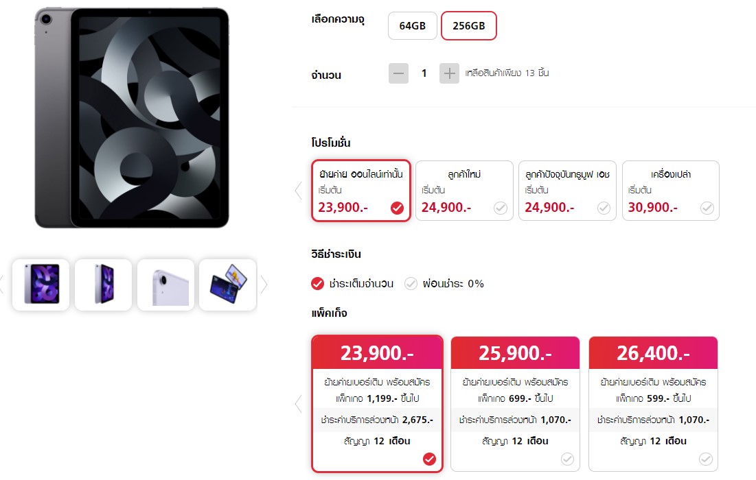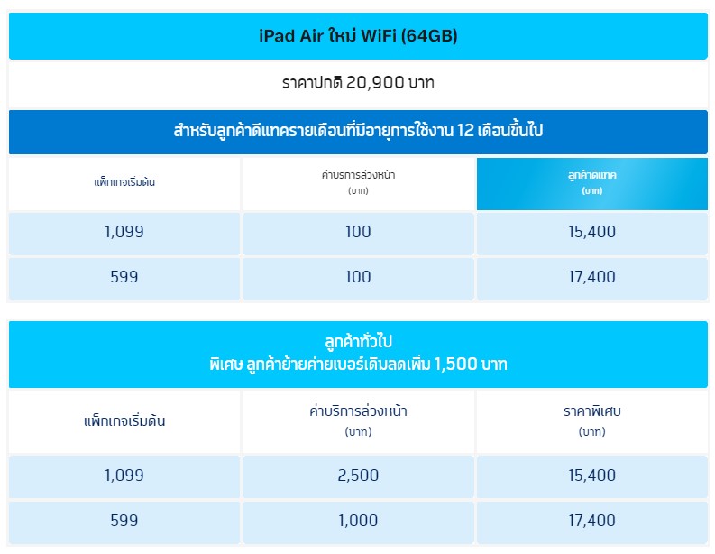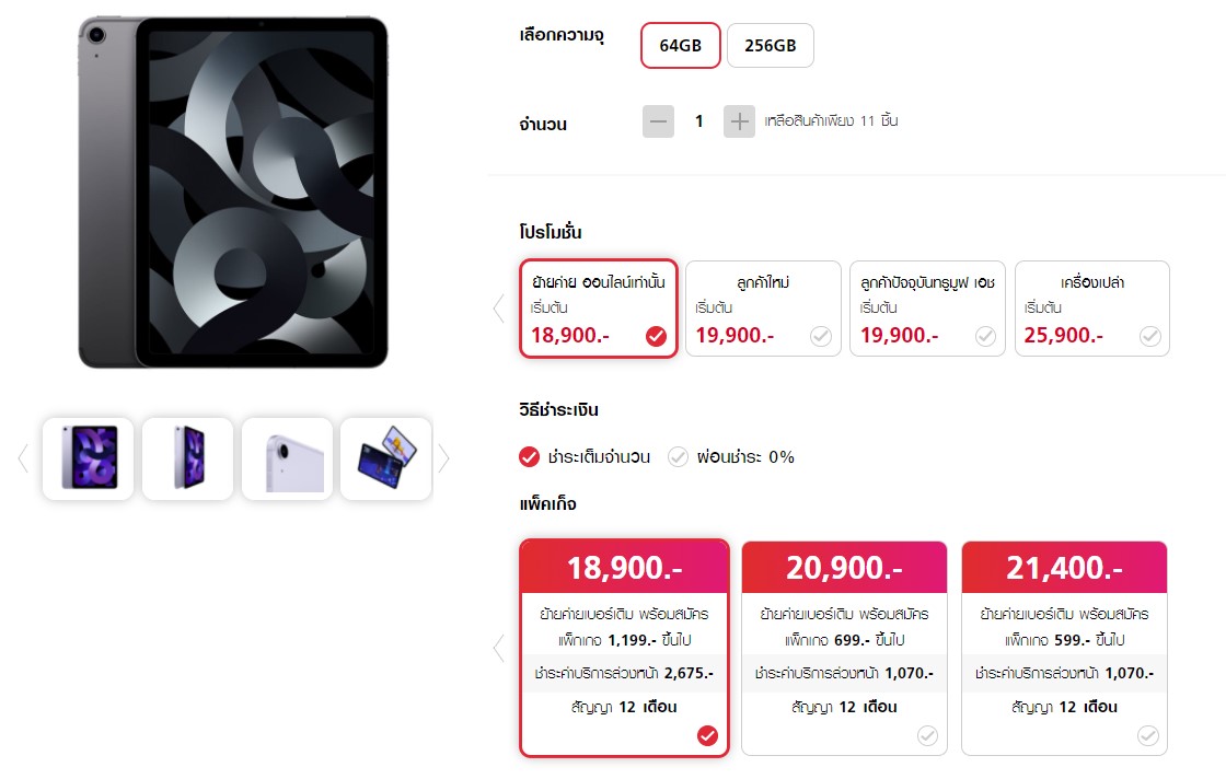 อัปเดตโปรโมชั่นจอง iPad Air 5 เวอร์ชั่น Wi-Fi / Cellular แต่ละค่ายของผู้ให้บริการเริ่มต้น 15,400 บาทiPad Air 5 Wi-Fi + Cellular ตอนนี้เปิดจองให้อย่างเป็นทางการแล้วครับทั้งนี้ มันจะมีโปรโมชั่นอย่างไรบ้าง