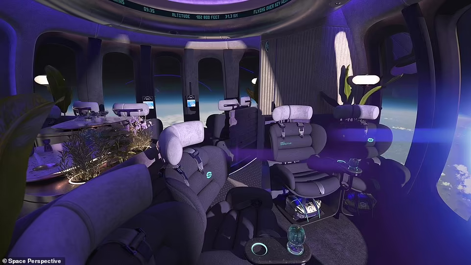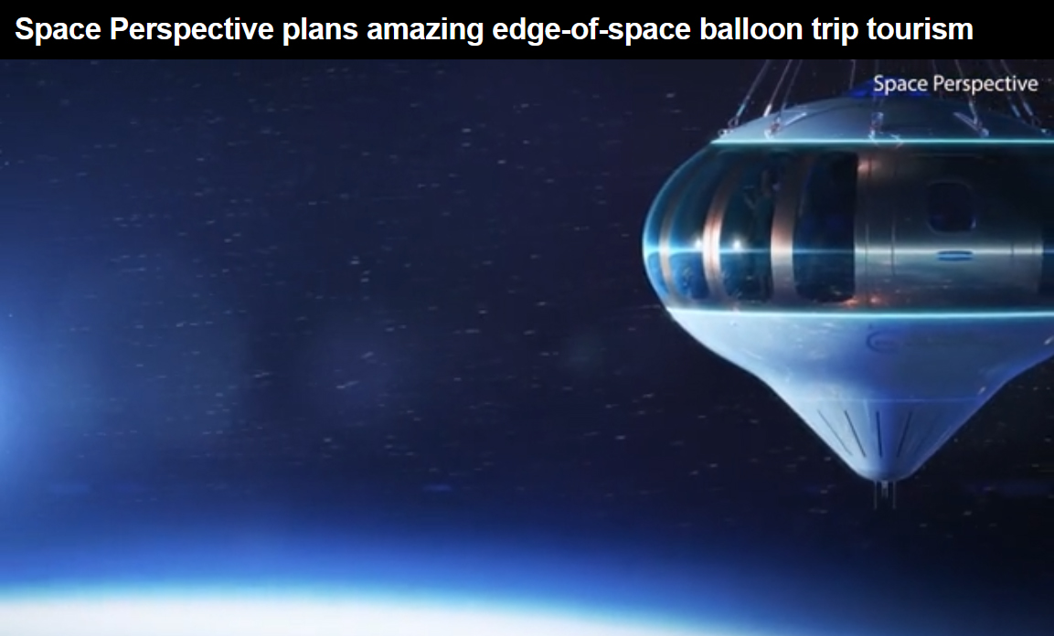 ซึ่งการทัวร์อวกาศครั้งนี้จะให้สังเกตในเรื่องของโค้งที่ขอบโลกระยะ 20 ไมล์ (30 กิโลเมตร) โดยอนาคตอาจจะดูตื่นต้น ทั้งนี้ในฐานของ Space Perspective ซึ่งตั้งอยู่ในสหรัฐอเมริกามีการเปิดเผยรายละเอียดเพิ่มเติมเกี่ยวข้องกับการร่วมทุนสร้างบอลลูนขนาดยักษ์ ซึ่งหลังจากแชร์ภาพประกอบห้องโดยสาร พร้อมด้านต่างสูง 5 ฟุต สีม่วงออกเข้ม และมีบาร์เครื่องดื่มให้บริการ