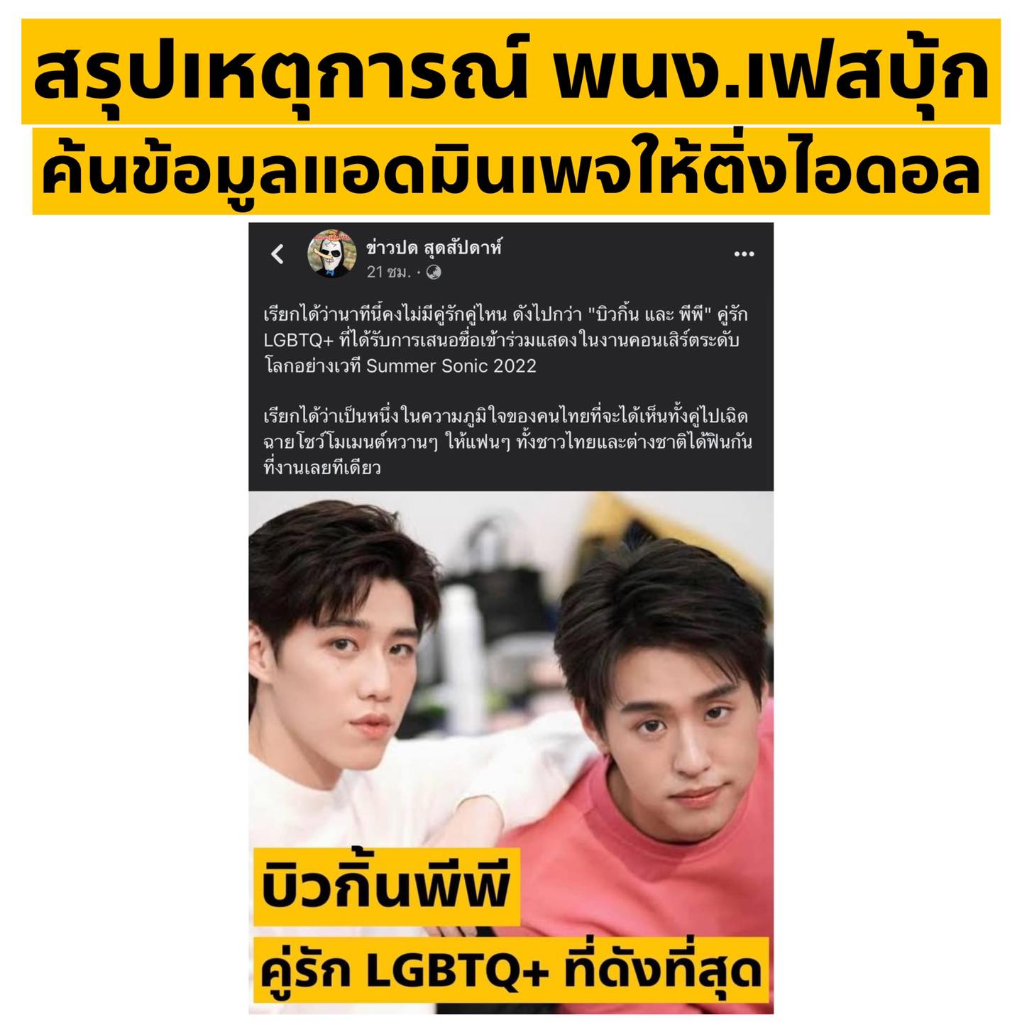 กลายเป็นประเด็นที่กำลังมาแรงในตอนนี้หลังจากที่มีประเด็นร้อนแรงเกี่ยวกับศิลปินดังอย่าง “พีพี-บิวกิ้น” จนเป็นประเด็นดังในโซเชียลจนนำไปสู่การขุดค้นไล่ล่ารายชื่อแอดมิน ข่าวปด สุดสัปดาห์ แต่ปัญหาที่เรากำลังจะพูดถึงนั้นกลับไม่ใช่ประเด็นของ “พีพี-บิวกิ้น” แต่กลายเป็นเรื่องของข้อมูลที่หลุดออกมาและทางต้นเรื่องบอกว่าได้มาจากพนักงานของ Facebook นั้นเอง