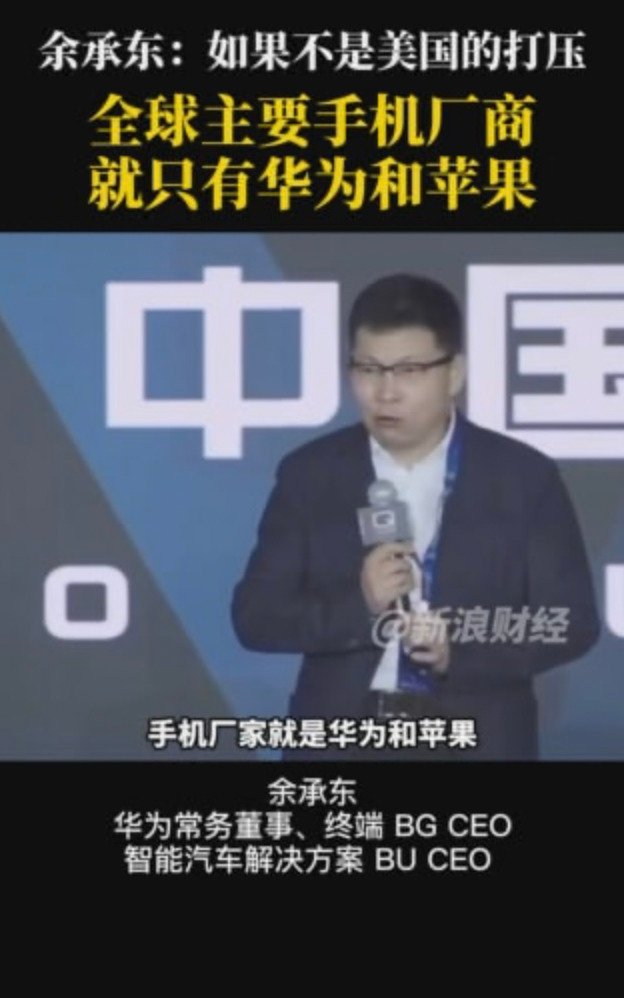 รีชาร์ด หยู (Richard Yu) CEO ของ Huawei Consumer Business Group และ Huawei Smart Car Business Unit ได้ให้สัมภาษณ์เกี่ยวกับเรื่องการคว่ำบาตรว่า หากไม่มีการคว่ำบาตรจากสหรัฐอเมริกา โลกนี้ก็จะเหลือผู้นำแค่ Huawei และ Apple ไปแล้ว