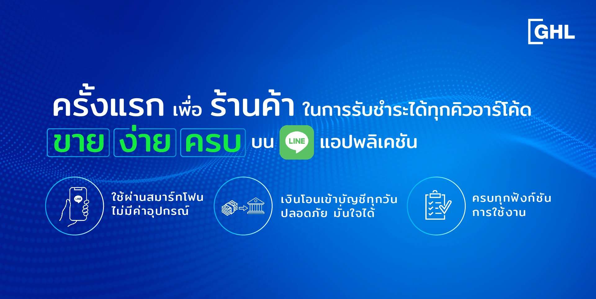 “GHL QR Payment” พัฒนาบริการให้อยู่บน LINE Official Account เพื่อเป็นอีกหนึ่งทางเลือกสำหรับร้านค้าในการรับชำระเงินที่ปลอดภัยตาม QR มาตรฐาน EMVco. โดย GHL คาดหวังว่าบริการการรับชำระแบบใหม่นี้ที่ทำผ่านโทรศัพท์มือถือของผู้ค้า จะสามารถให้บริการลูกค้าตั้งแต่ร้านค้า ธุรกิจครบวงจรที่เป็นบริษัทขนาดใหญ่และธุรกิจค้าปลีก SME ขนาดเล็ก ไปจนถึงระดับคนทำงาน ซึ่งนับว่า GHL QR Payment ผ่าน LINE เป็นโซลูชั่นการชำระเงินผ่านมือถือที่คุ้มค่า ไม่จำเป็นต้องใช้เครื่องปลายทาง EDC และไม่มีค่าใช้จ่ายที่เกี่ยวข้องต่าง ๆ เพิ่มเติม สิ่งนี้จะดึงดูดผู้ค้ารายย่อยและโดยเฉพาะอย่างยิ่งผู้ค้าที่รับชำระผ่านโทรศัพท์มือถือ และนอกเหนือจากนี้ผู้ให้บริการที่สามารถเพิ่มยอดขายได้โดยการเพิ่มช่องทางการชำระเงินผ่าน QR CODE ผ่านบัตรเครดิต หรือ e-Wallet ผู้ค้าสามารถตรวจสอบธุรกรรม ยกเลิกธุรกรรมที่ผิดพลาด และสามารถดูรายงานย้อนหลังได้ GHL ยังสามารถรองรับร้านค้าที่มีสาขาหลายแห่งที่ต้องการรับการชำระเงินผ่านบัญชีเดียวจากหลากหลายสถานที่และหลากหลายอุปกรณ์