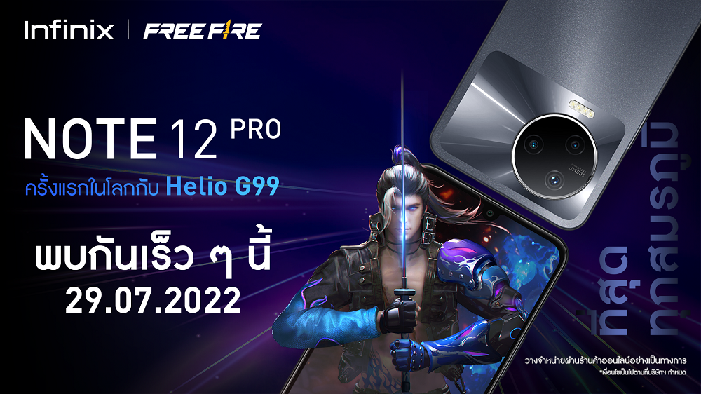สำหรับ NOTE 12 PRO และ NOTE 12 PRO 5G เป็นสมาร์ตโฟนรุ่นใหม่ที่ได้รับการสนับสนุนและ ถือลิขสิทธิ์จาก Free Fire ที่มาพร้อมการดีไซน์เรียบหรู ดูสมัย เน้นจับกลุ่มวัยรุ่นวัยทำงานที่ชื่นชอบการเล่นเกม และเอาใจสายเกมเมอร์ตัวจริง โดยรุ่น NOTE 12 PRO มีหัวใจการทำงานหลักด้วย MediaTek Helio G99 และ NOTE 12 PRO 5G ใช้ชิปเซ็ต 6nm MediaTek Dimensity 810 รองรับสัญญาณ 5G