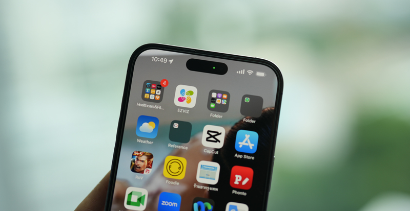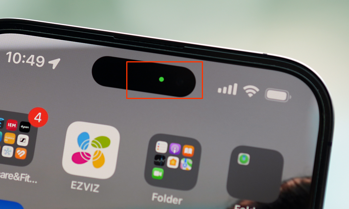 ตัวแสดงสถานะสีเขียว หมายความว่าแอปบน iPhone ของคุณกำลังใช้กล้องหรือไมโครโฟนอยู่