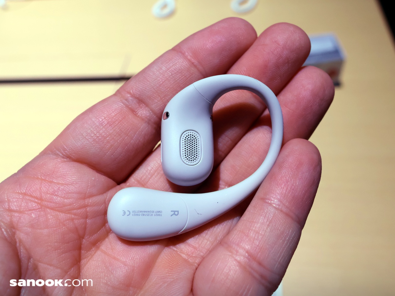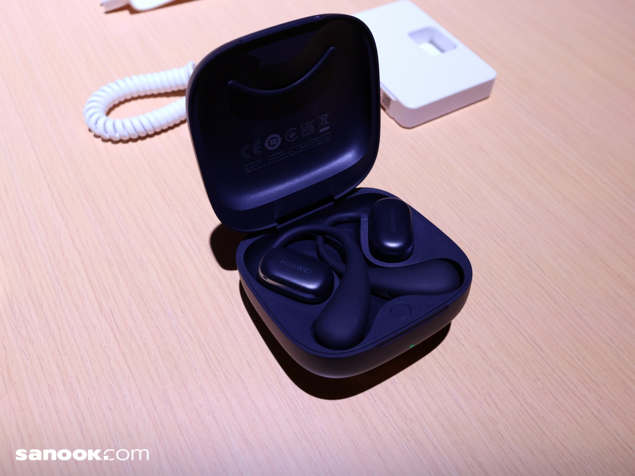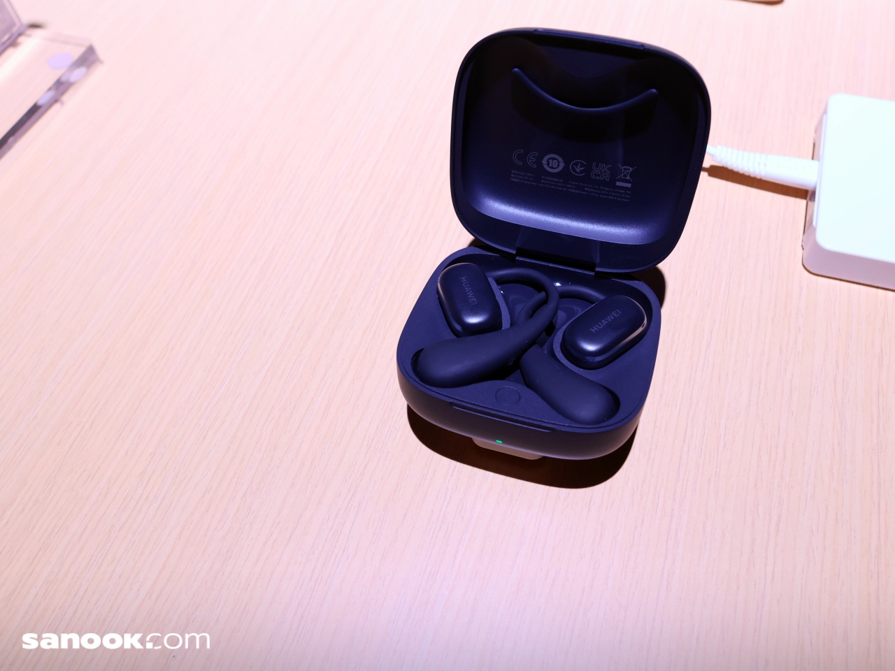 และมาถึงอีกชิ้นที่มีการเปิดตัวในครั้งนี้ของ HUAWEI นั่นคือ HUAWEI FreeArc หูฟังแบบ Open-ear รุ่นแรกที่มาพร้อม earhook ดีไซน์ตามหลักสรีรศาสตร์ โดดเด่นด้วย C-Bridge Design อันเป็นเอกลักษณ์ของ Huawei ผสานกับโลหะผสมนิกเกิล-ไททาเนียม (Ni-Ti) ความหนา 0.7 มม. ที่สามารถปรับรูปทรงให้เข้ากับใบหูของผู้ใช้ได้อย่างง่ายดาย