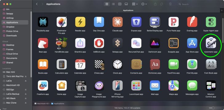 - เปิดแอป Automator จากโฟลเดอร์ Applications