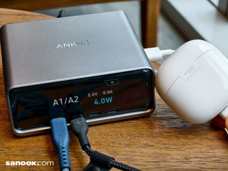 สำหรับที่ชาร์จตั้งโต๊ะดีๆ ของ Anker รุ่นนี้จะมี หน้าจอ LCD ขนาด 2.3 นิ้ว ที่แสดงสถานะการชาร์จ ความเร็วในการชาร์จ และกำลังไฟที่จ่ายให้กับอุปกรณ์แต่ละชิ้นแบบเรียลไทม์ สามารถควบคุมและปรับแต่ได้มากมายเช่น