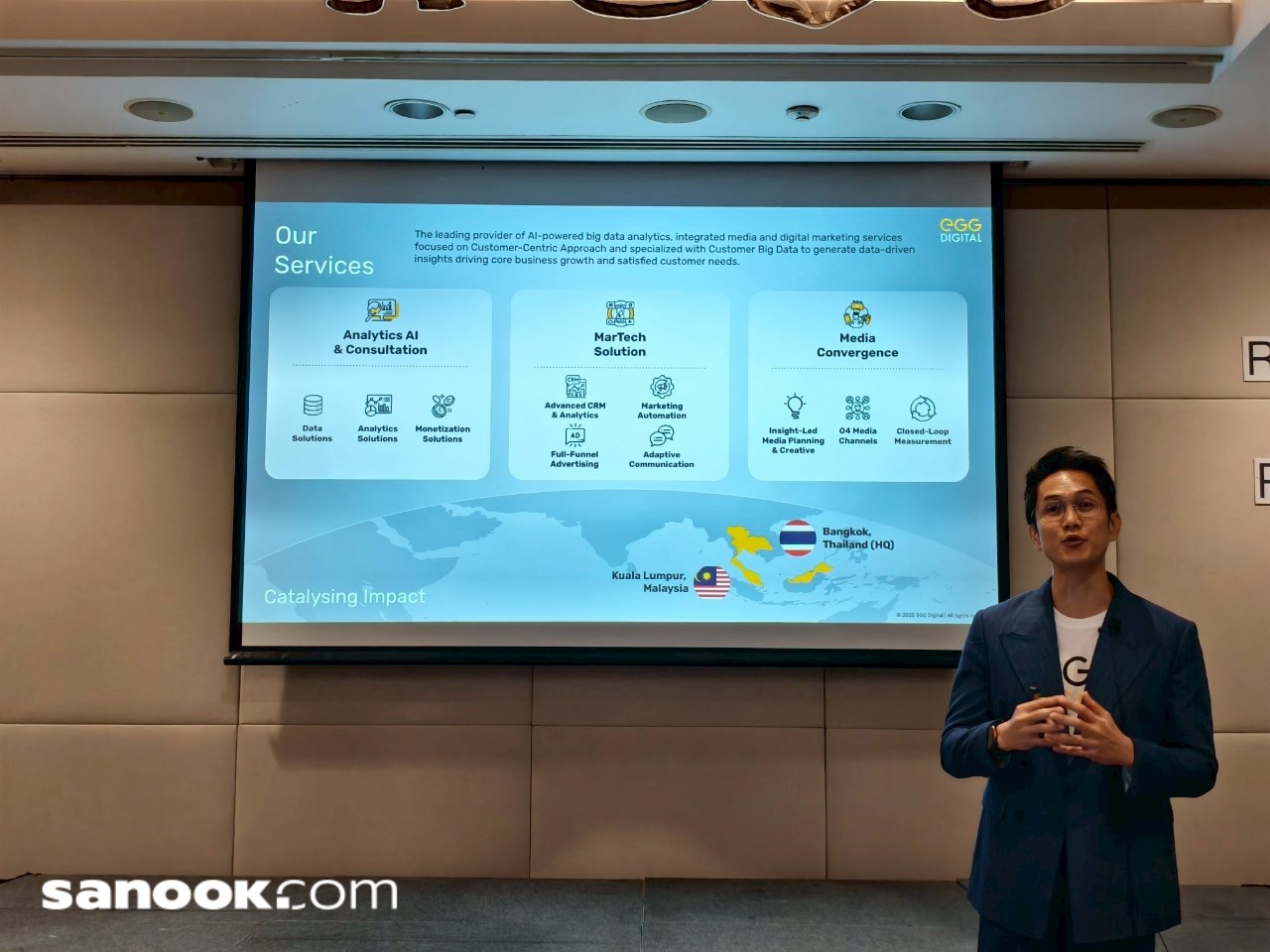 ดร. ธีรเดช ดำรงค์พลาสิทธิ์ ประธานเจ้าหน้าที่บริหาร บริษัท เอ้ก ดิจิทัล จำกัด กล่าวว่า กลยุทธ์สำคัญที่ทำให้เอ้ก ดิจิทัลเติบโตในปี 2567 คือการนำ AI มาใช้ใน 3 ธุรกิจหลัก ได้แก่ Analytics AI and Consultation, Media Convergence และ MarTech Solution และในปี 2568 จะต่อยอดและยกระดับบริการด้วย AI ภายใต้แนวคิด Redesigning Tomorrow’s Customer Journey เพื่อสร้างประสบการณ์ใหม่ให้กับผู้บริโภคด้วยข้อมูล เทคโนโลยี และความคิดสร้างสรรค์