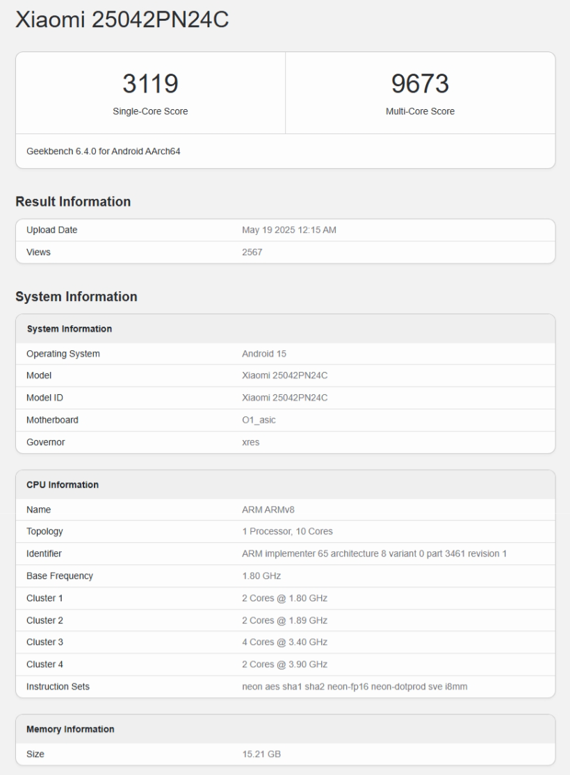 นักปล่อยข่าวลือที่น่าเชื่อถืออย่าง @UniverseIce และ @Jukanlosreve ได้เผยแพร่ผลการทดสอบ Geekbench ของอุปกรณ์ที่มีรหัสรุ่น Xiaomi 25042PN24C ซึ่งเป็นข้อมูลที่สำคัญด้วยสองเหตุผล: