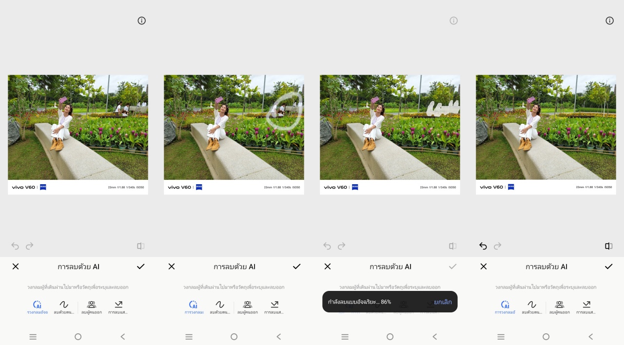 - AI Erase 3.0 ลบสิ่งที่ไม่ต้องการในภาพ เช่นคนเดินเยอะๆ ให้หายไปแค่กดปุ่มเดียว