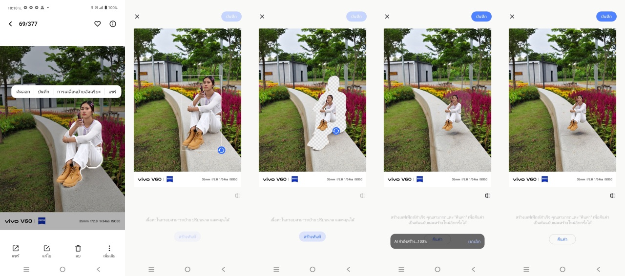 ไม่ได้มีดีแค่สเปกกล้องที่ให้มาแบบเหนือชั้น แต่ vivo V60 มาพร้อมกับ ฟีเจอร์กล้องที่ถ่ายจบทั้งการถ่ายครั้งเดียว หรือ จะแต่งก็ได้ ตัวอย่างเช่น