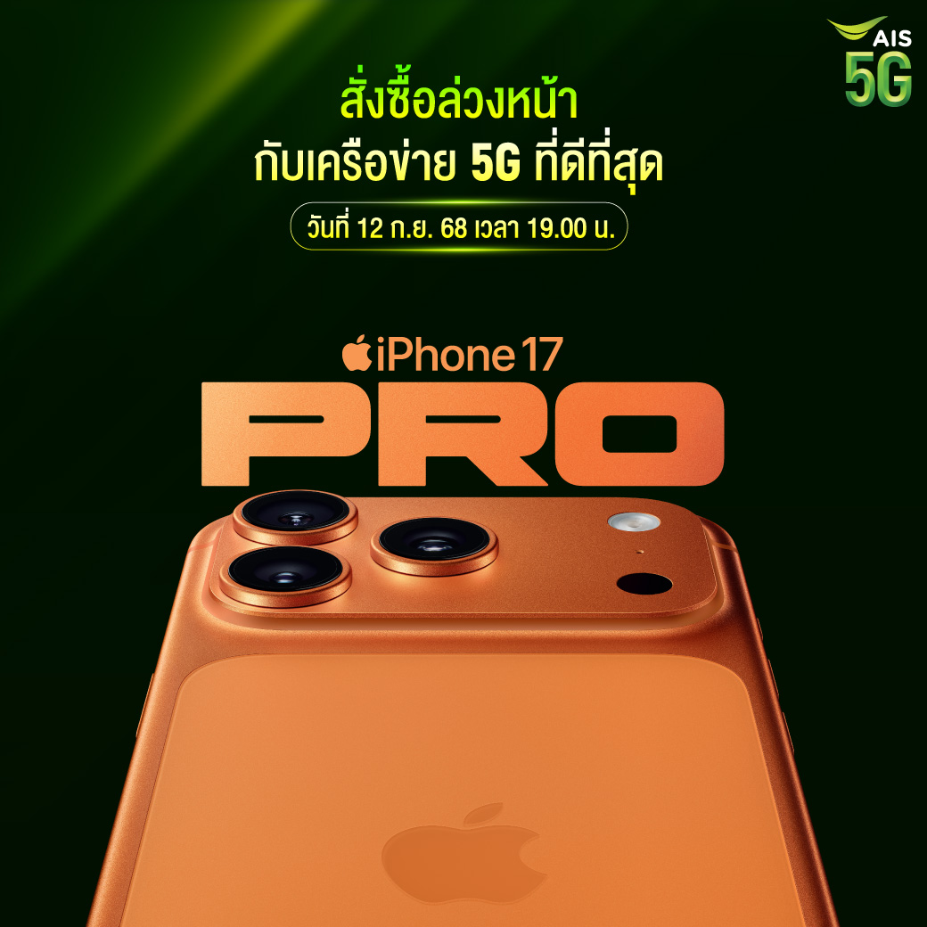 หลังจากงาน Apple Event จบลงไปสดๆ ร้อนๆ สร้างกระแสฮือฮาไปทั่วโลก ล่าสุด AIS 5G ผู้ให้บริการเครือข่ายชั้นนำของไทย ก็ไม่รอช้า ประกาศเป็นทางการแล้วสำหรับกำหนดการสั่งจอง iPhone 17 Series สมาร์ทโฟนรุ่นใหม่ล่าสุดจาก Apple ครบทั้ง 4 รุ่น ได้แก่ iPhone 17, iPhone 17 Air, iPhone 17 Pro และ iPhone 17 Pro Max