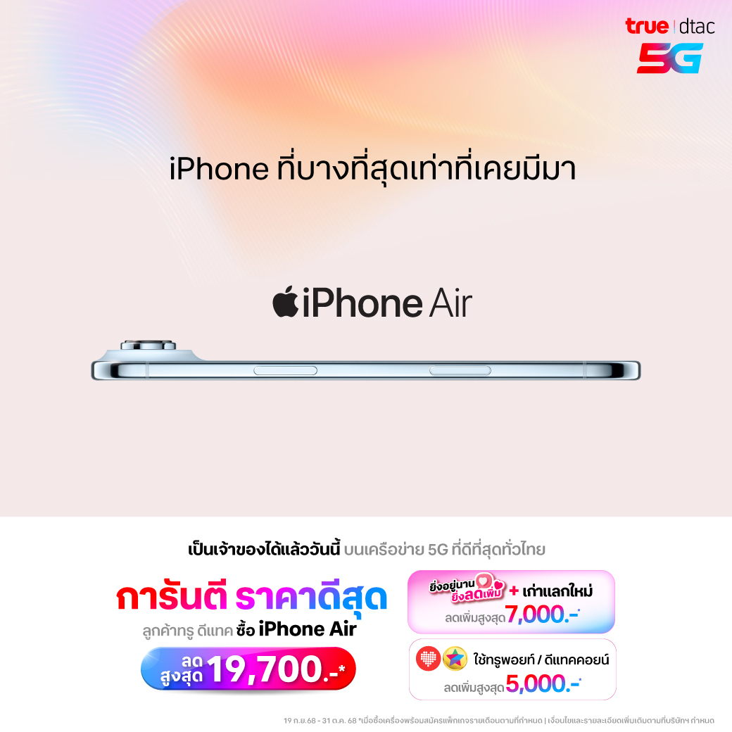 แม้จะเปิดตัวและวางจำหน่ายไปแล้ว 1 สัปดาห์ สำหรับ iPhone รุ่นใหม่ล่าสุด ใครพลาดไม่ต้องเสียใจ เพราะวันนี้เราจะมาส่องโปรโมชั่นเด็ด ไม่ว่าจะเป็น iPhone 17 Pro Max, iPhone 17 Pro iPhone Air, หรือ iPhone 17 ของทรู ดีแทค 5G
